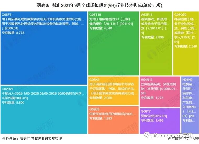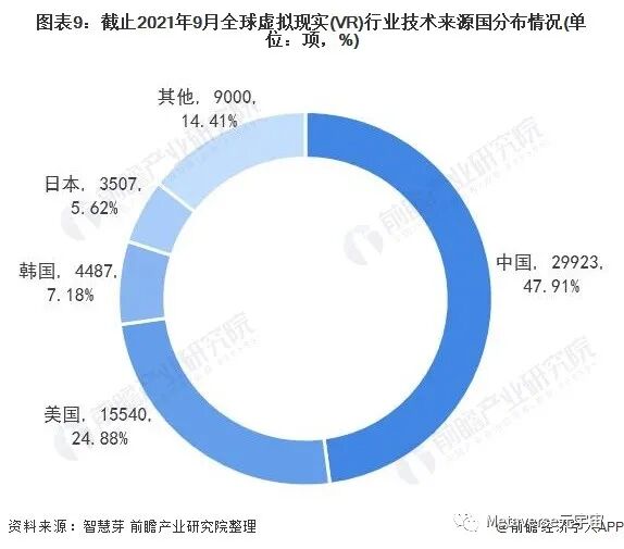 全文統計口徑說明:1)搜索關鍵詞:虛擬現實(VR)及與之相近似或相關關鍵詞;2)搜索范圍:標題、摘要和權利說明;3)篩選條件:簡單同族申請去重、法律狀態為實質審查、授權、PCT國際公布、PCT進入指定國(指定期),簡單同族申請去重是按照受理局進行統計。4)統計截止日期:2021年9月7日。5)若有特殊統計口徑會在圖表下方備注。