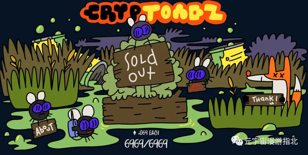 Noun 的子品牌。100 ETH 的超級俱樂部 Noun 進不去,那么,6 ETH 加入超級俱樂部的子品牌蟾蜍吧,劃算。