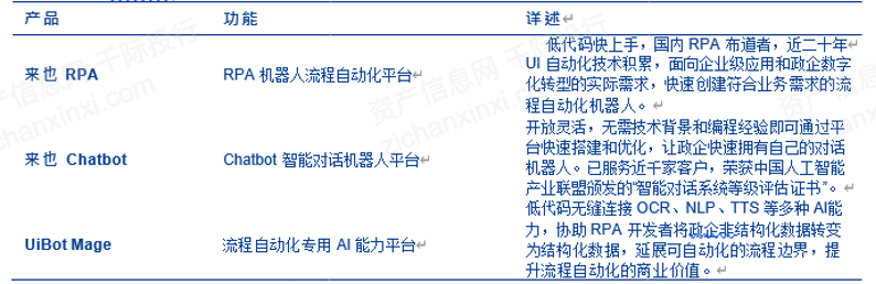 技術支持方:RPA廠商中,部分企業不具備AI能力,因此尋求和第三方AI公司合作,由AI企業為其提供技術支持;
