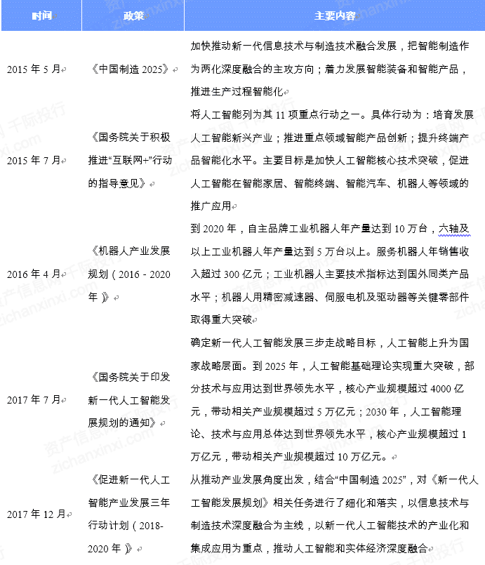 2017年之前,人工智能相關政策主要集中在人工智能技術研發突破方面。從2017年開始,政策的重點已經從人工智能技術轉向技術和產業的深度融合,特別是2017年7月國務院印發的《新一代人工智能發展規劃》明確指出要“加快人工智能深度應用”。