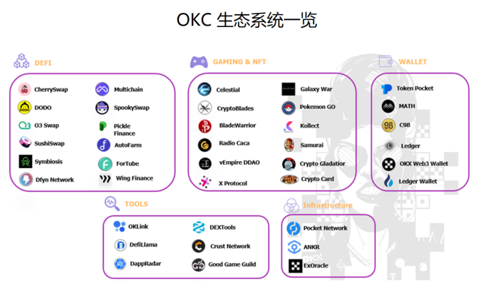 另外一點,我們自己也會參與到公鏈的開發。因為我們認為未來肯定是個多鏈的市場,所以我們自己的 OKC 是一條公鏈,同時也是 Cosmos 生態成員之一,100% 支持 EVM,TPS 高,手續費便宜,目前大部分的 DApp 應用和想法都可以在 OKC 公鏈里實現。