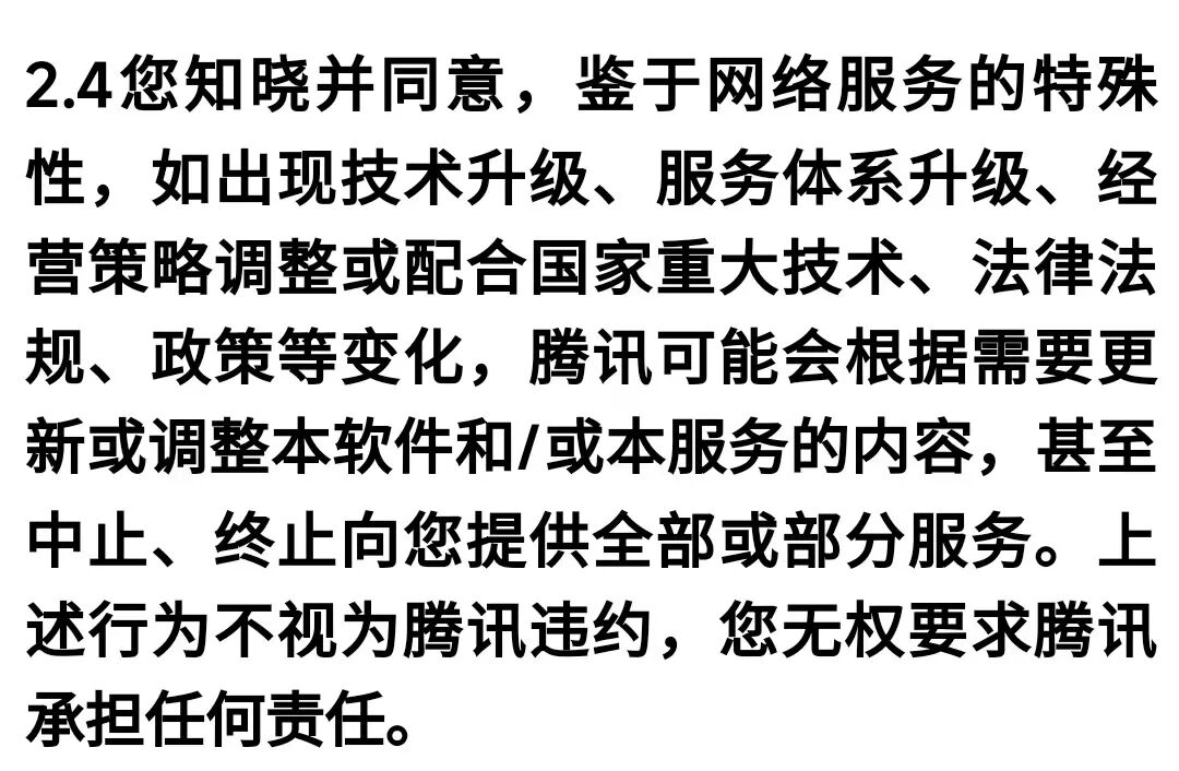但騰訊對于此類事件的既往處理方式,大家都有目共睹,而更尷尬的是,小藍在幻核的服務協議中看到了這條: