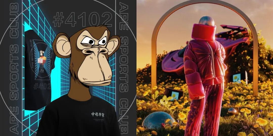 相較于發行數字藏品的常規玩法,運動潮牌李寧力求創新,選擇聯動出圈NFT項目“無聊猿”,邀請BAYC家族的無聊猿#4102號成為快閃店主理人,并將其作為印花,打造實體時尚單品;此外,前段時間在國內社交媒體小紅書上大火的“虛擬時裝”,通過PS技術輔助NFT實現了虛擬與現實的聯動,讓眾多網絡潮人過了一把未來時尚的癮。