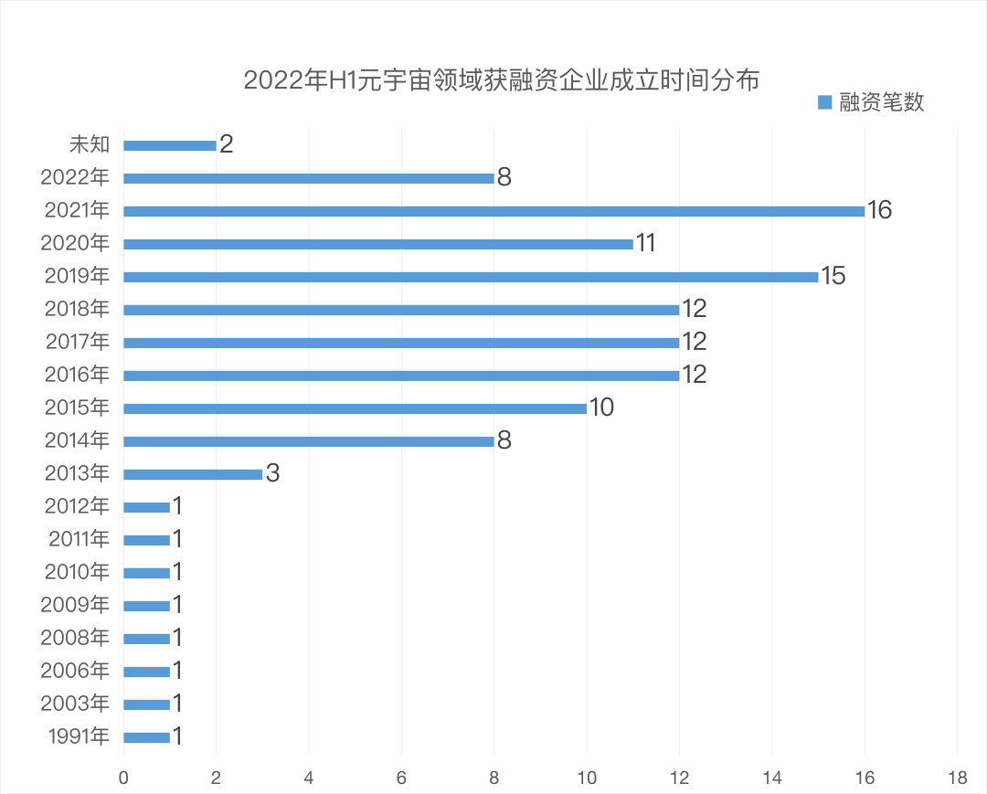 ▲2022年H1元宇宙領域獲融資企業成立時間分布