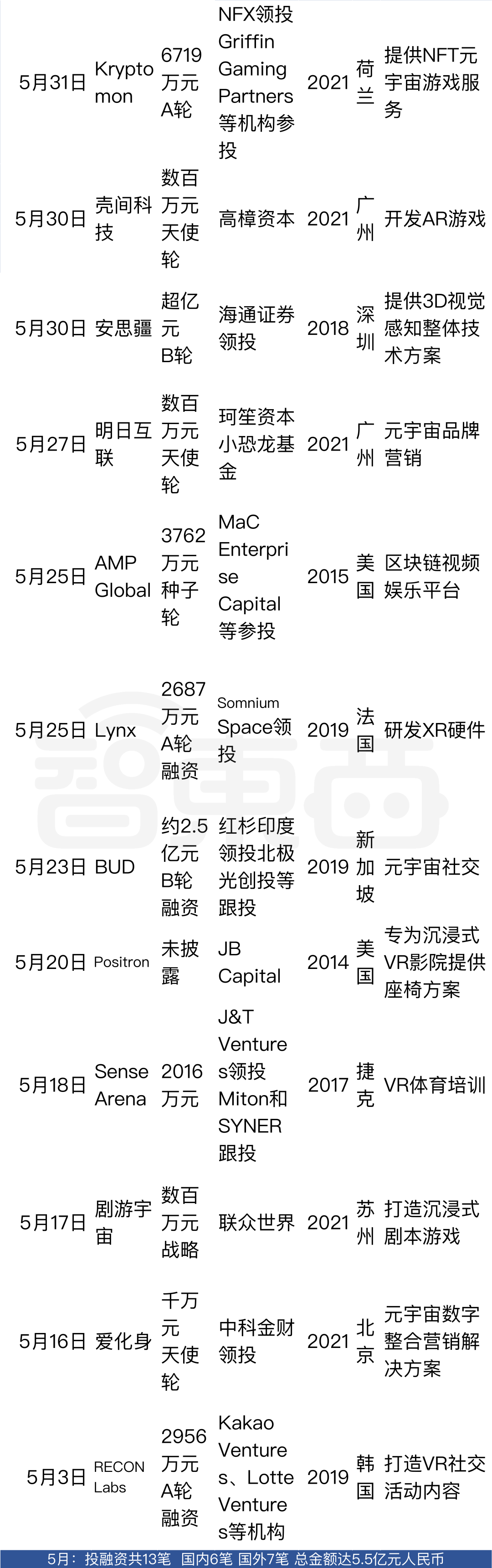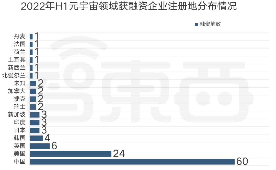 通過梳理相關信息,我們發現在元宇宙賽道,中國相關企業受到資本關注的程度,遠高于其他國家。2022年上半年,有60家中國企業獲得投融資,平均3天一筆融資,這些獲得投融資的企業正在成為構建“元宇宙”的先頭部隊。![]()