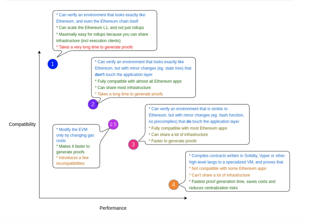 如果以太坊本身采用修改以變得對 ZK 更加友好,則類型 2 或類型 3 的 ZK-EVM 可以成為類型 1 的 ZK-EVM。