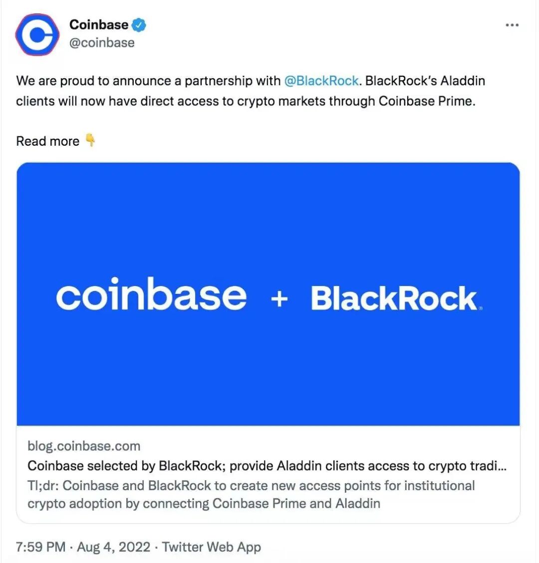 8月4日,貝萊德與Coinbase達成協議,通過 Coinbase Prime 為阿拉丁客戶提供加密交易和托管服務。
