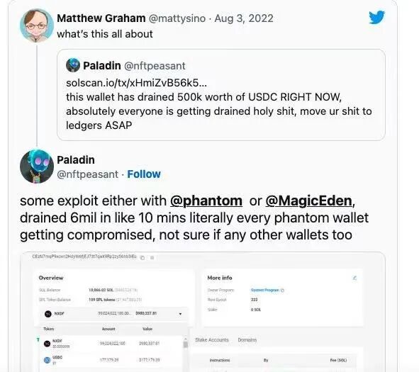 8月3號,根據慢霧監測顯示,目前共有8000余個Solana錢包被盜,約5.8億美元歸集到4個地址,Phantom及Slope錢包據報道都受到影響。就幣圈的體量來說,基本上屬于人均被盜了。
