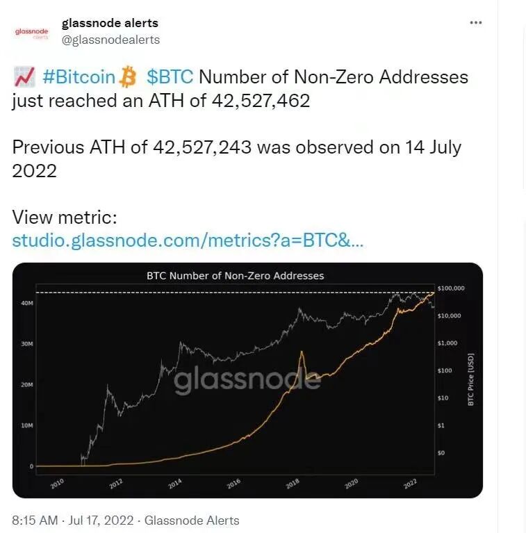 Glassnode數據顯示,比特幣非零地址數量達到 42,527,462 個,創歷史新高。是不是囤幣開始了?~