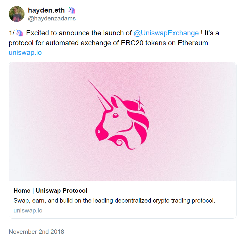 AMM 第一次在加密領域的引用, 是 Vitalik Buterin 于 2016 年發表的一篇 Reddit 帖子,文中他討論了以運行預測市場相同的方式來構建去中心化交易所的想法。之后,Vitalik 的這一想法開始在社區流傳開來,并被一個社區迅速跟進,兩年后,Vitalik 又發布了一篇關于 AMM 的后續文章,詳細說明了他如何看待去中心化交易所的作用,幾個月后,幾個月后,Hayden Adams 宣布推出Uniswap協議,從而啟動了第一代加密貨幣 AMM的歷史。
