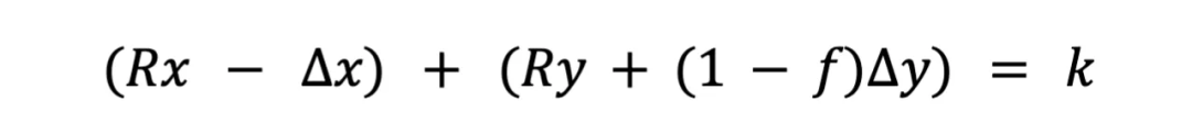 其中Rx和Ry指每種代幣的儲備量,f是交易費用,k是一個常數,簡化版的寫法如下: