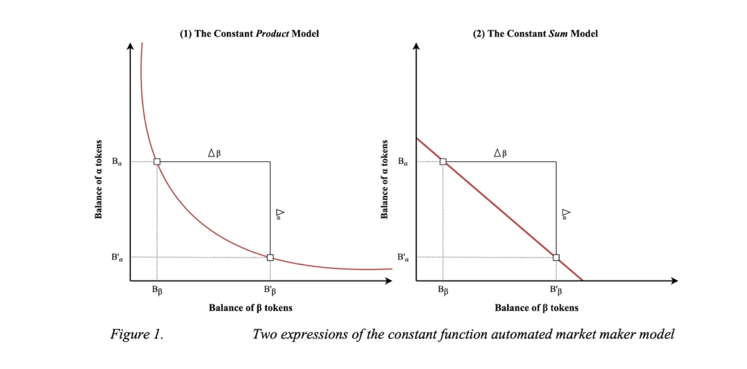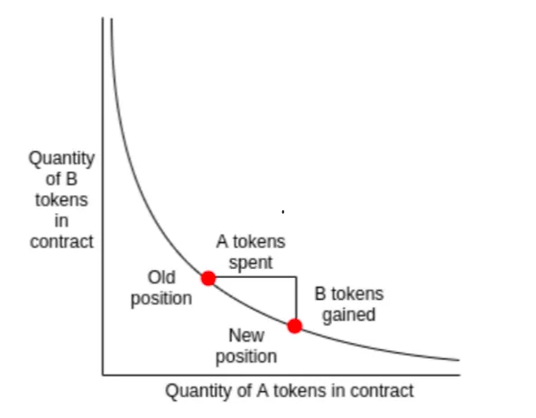 Uniswap 引入了恒定積做市商公式,以確保在以太坊的代幣交易中具有恒定的流動性,公式如下: