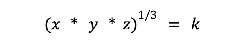 其中R是每種資產的儲備量,w是每種資產的權重,k是常數。如果是在具有三種資產的相等流動性池中,等式就可以簡化如下: