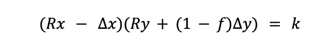 其中Rx和Ry是每個代幣的儲備,f是交易費用,k是一個常數。更簡單的公式表示為:
