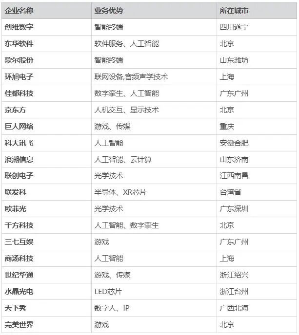 國內元宇宙龍頭企業盤點: