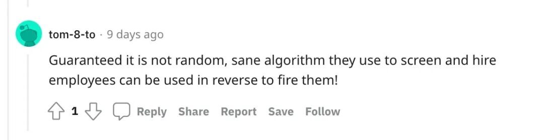 也有人諷刺道,Meta這次用的算法可能是“最近沒有拍領導馬屁的employee,全部都fire掉!”