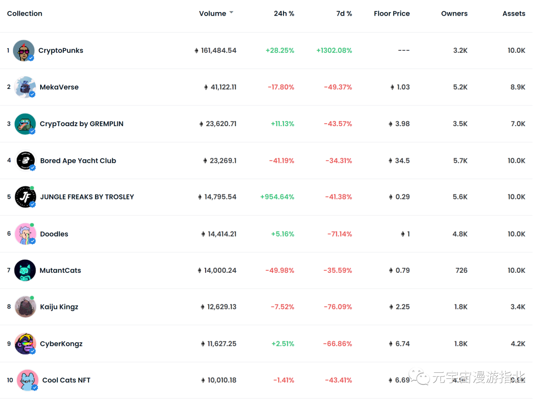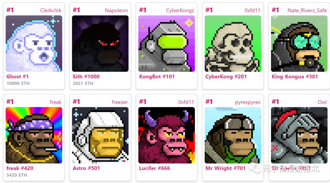 Cryptopunks、BAYC、Cyberkongz、酷貓、Toadz蟾蜍,本來就都是歷史前十的項目,地位擺在這里了,逢低買一些藍籌項目,長線看來一定是劃算的買賣,理所當然它們會在十月上榜了。