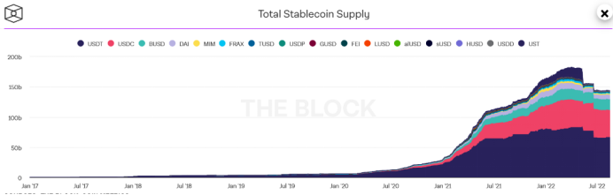 2017-2022 穩定幣發展情況 數據來源:theblock