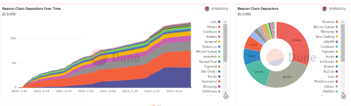 信標鏈以太坊質押服務商占比情況 數據來源:dune