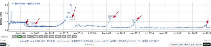 六次推遲難度炸彈 數據來源:bitinfocharts