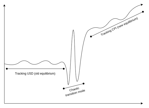 如果美元不再是可行的參考資產,RAI 生態系統內部體驗的程式化圖表將意外過渡到基于 CPI 的制度。