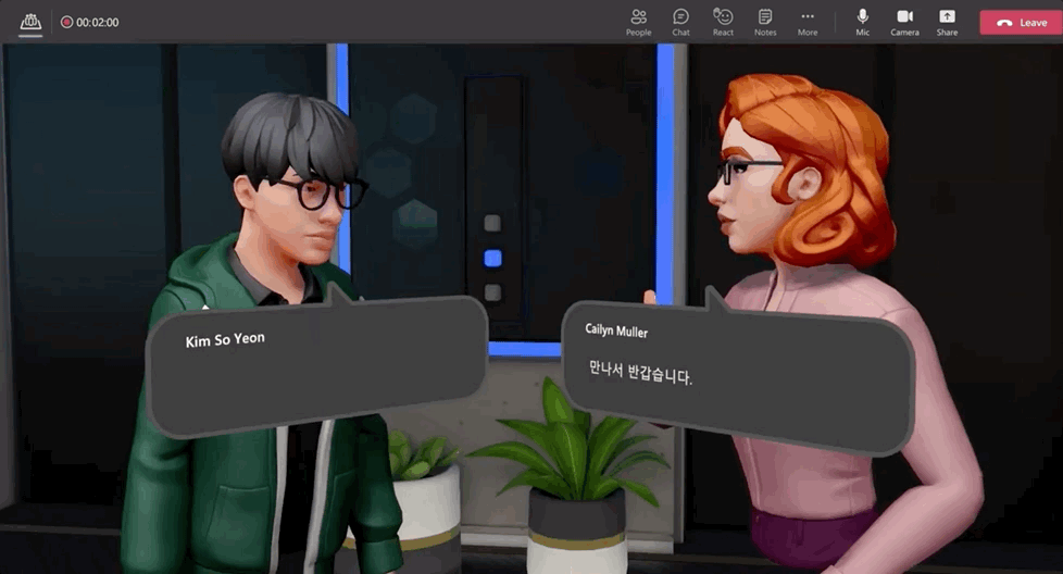 未來語言障礙也能夠破解。微軟目前正在構建翻譯和轉錄支持,人們可以在虛擬Teams空間與來自世界各地的同事見面。