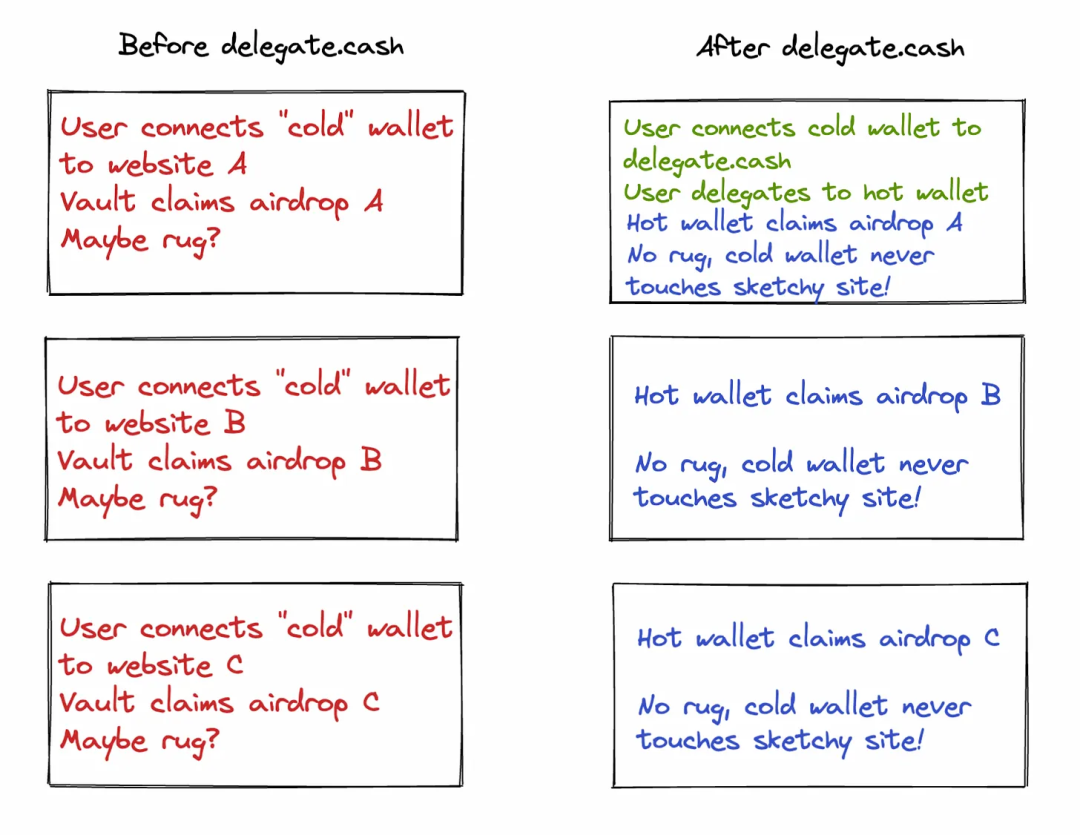 這不是一種高摩擦的用戶體驗嗎?恰恰相反,它應該是低摩擦的!你可以在 delegate.cash 上委托一次,然后用你的熱錢包進行所有未來的交互,而不是每次都把你的冷錢包從倉庫里挖出來。