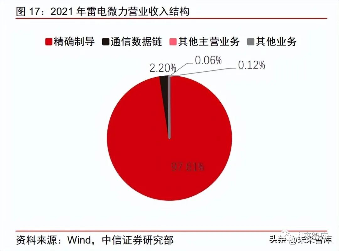 公司收入和利潤主要來自精確制導類產品。公司主要產品包括精確制導和通信數據鏈, 從收入結構來看,精確制導作為公司的主要產品,隨著 2019 年對應型號精確制導產品定 型,收入開始大幅增長,營收比重提高;2021 年公司實現營業收入 7.35 億元,精確制導 收入為 7.17 億元,占比 97.61%,通信數據鏈收入為 0.16 億元,占比 2.20%。2021 年精 確制導毛利率為 41.79%,通信數據鏈為 69.20%,公司實現毛利潤 3.12 億元,其中精確 制導 3.00 億元,占比 96.23%,通信數據鏈 0.11 億元,占比 3.60%。