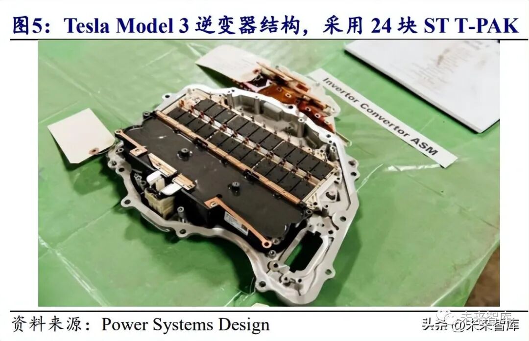 將碳化硅(SiC)器件應用于電力電子領域的提議最早誕生于 60 年代,然而,由于 SiC 襯底在制造方面存在一些困難,遲滯了 SiC 功率器件的發展。阻礙其大規模應 用的主要挑戰是成本問題,包括高品質材料的有限性、晶圓的制造成本、更大直徑 晶圓的制造問題、缺陷密度以及產量。但隨著技術迭代和 SiC 襯底和晶圓良率提升, 2018 年 Tesla 率先在其革命性的純電動汽車 Model 3 主驅中使用了由 ST 供應的 SiC MOSFET 芯片,每兩顆芯片封裝為 1 個 T-PAK 小模塊,并將 24 個小模塊并聯以提 升逆變器功率,由此拉開了 SiC 大規模量產使用的序幕。盡管單個碳化硅功率器件 比硅器件更昂貴(約為硅器件 2-3 倍),但使用碳化硅器件能夠節省系統成本,因為 需要更少的組件、更小的無源組件尺寸、更小的冷卻系統、相同里程范圍內的更小 的電池容量以及更少的設計開發工作量。