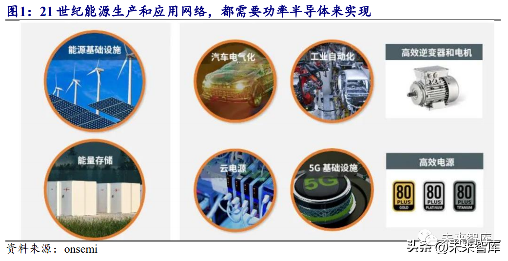 2021 年 10 月 26 日,國務院印發《2030年前碳達峰行動方案》,明確提出大力推廣 新能源汽車,逐步降低傳統燃油汽車在新車產銷和汽車保有量中的占比,到2030年,當年新增新能源、清潔能源動力的交通工具比例達到 40%左右。在這一長達40年的國家重大戰略里,基于功率半 導體的諸多電氣技術將在碳中和進程中起著不可替代的關鍵作用。功率半導體是電 子裝置電能轉換與電路控制的核心,本質上,是通過利用半導體的單向導電性實現 電源開關和電力轉換的功能。無論是水電、核電、火電還是光伏、風能,甚至各種 電池提供的化學電能,大部分均無法直接使用,需由功率半導體器件進行功率變換 以后才能供設備使用。