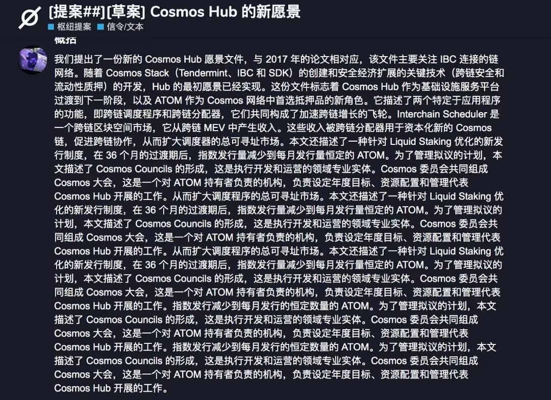 Atom2.0白皮書發布: 從松散聯盟走向經濟共同體 更新后的代幣經濟模型讓Cosmos Hub 有了實際產生收入的方式,并且 ATOM 有了更多的價值捕獲,不再是一個完全的松散邦聯,更像一個經濟共同體,正如 Mindao 對于 Cosmos 2.0 白皮書的評價一樣:Cosmos 2.0 正試圖將 ATOM 變成“Cosmos Union”的無權限歐元,作為一種服務提供共享經濟安全和去中心化,而成員鏈仍然保留完全的主權。情報員評論:從高通脹的meme coin 變成了極具捕獲價值能力的token,bullish on Cosmos資料來源:https://forum.cosmos.network/t/proposal-draft-a-new-vision-for-cosmos-hub/7328