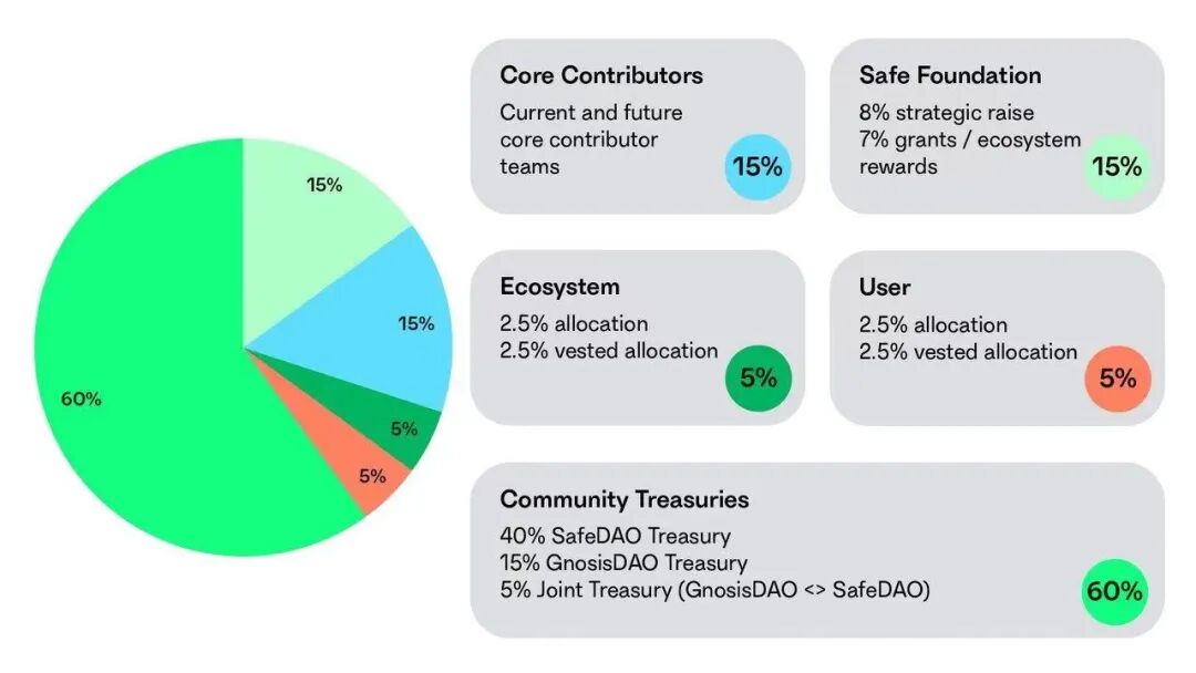 GnosisSafe 宣布開啟$SAFE代幣空投并成立SafeDAO9月28日,備受矚目的多簽錢包 GnosisSafe 宣布開啟$SAFE代幣空投并成立SafeDAO,$SAFE暫時不支持轉移和交易。Safe總量10億枚,其中核心貢獻者和基金會分別各占15%,生態和空投分別各占5%,剩下60%歸社區國庫所有。其中快照時間變更為8月18日,資產包括DAI、USDC、USDT、ETH、WETH,將基于交易活動和存儲價值分配的代幣之間的份額設置為 50:50,所有符合條件的賬戶將獲得至少 100 枚 Safe 代幣。情報來源:https://twitter.com/StefanDGeorge/status/1575076574382411777