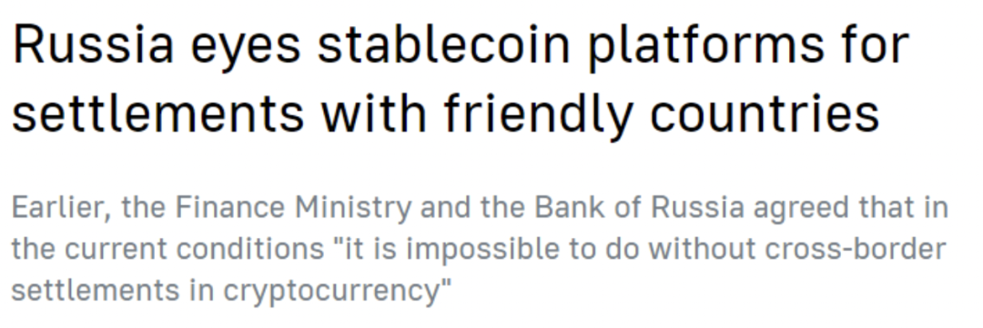 俄羅斯財政部副部長Alexey Moiseyev周二表示,俄羅斯正在與幾個友好國家合作,為穩定幣跨境結算建立清算平臺。“我們目前正與一些國家合作創建雙邊平臺,以便不使用美元和歐元。我們提供將在這些平臺上使用、相互可接受的代幣化工具,這些平臺本質上是我們目前正在與這些國家開發的清算平臺。”據此前報道,俄羅斯財政部副部長阿列克謝·莫伊謝耶夫在接受俄羅斯24電視頻道采訪時表示,財政部和俄羅斯銀行已經重新考慮了他們對加密貨幣的處理方式,并認為在不久的將來有必要使這些貨幣的跨境結算合法化。![]()
