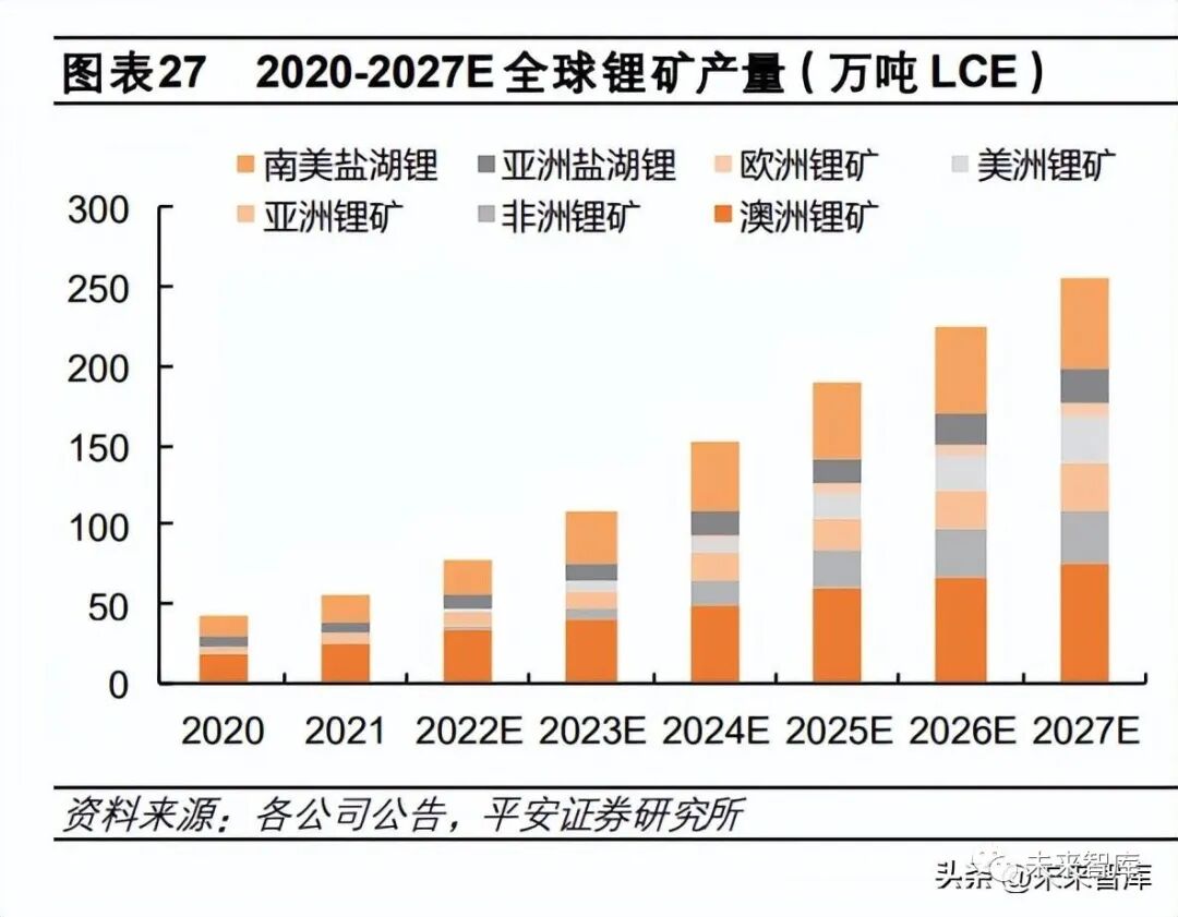 過去兩年間,全球在產鋰項目數量較少,澳洲優質鋰礦及南美成熟鹽湖項目貢獻主要供應量,未來澳礦將穩步增產,南美 鋰鹽湖也有較多在建項目可能在 2023-2025 年投產放量,澳洲及南美仍為全球鋰資源重要來源。除此之外,隨著非洲綠地 礦項目(Manono、Goulamina、Arcadia 等)陸續投產,非洲鋰礦產量在全球的占比將呈明顯上升趨勢,另外,遠期北美 及歐洲鋰礦產能逐步釋放將進一步充實全球鋰資源結構,鋰供應集中度將從高度集中向相對分散化演變。