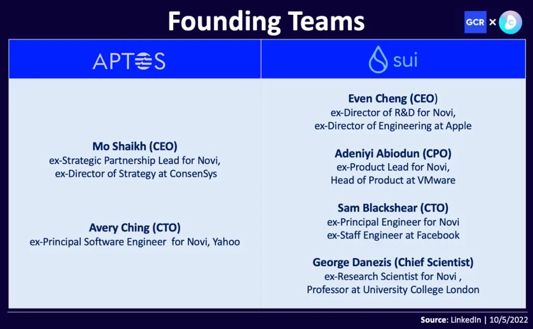 Aptos 和 Sui 的創始團隊深深植根于 Diem 和 Novi 項目。不可否認的是,這兩個項目都具備技術能力,可以執行這些已經積累了超過 40 億美元估值的愿景。毫無疑問,這兩個團隊都有很強的創始人與市場契合度。Mysten Labs 團隊包括 MOVE 編程語言白皮書的兩位合著者以及來自 Novi/Diem 團隊的更多研發力量。