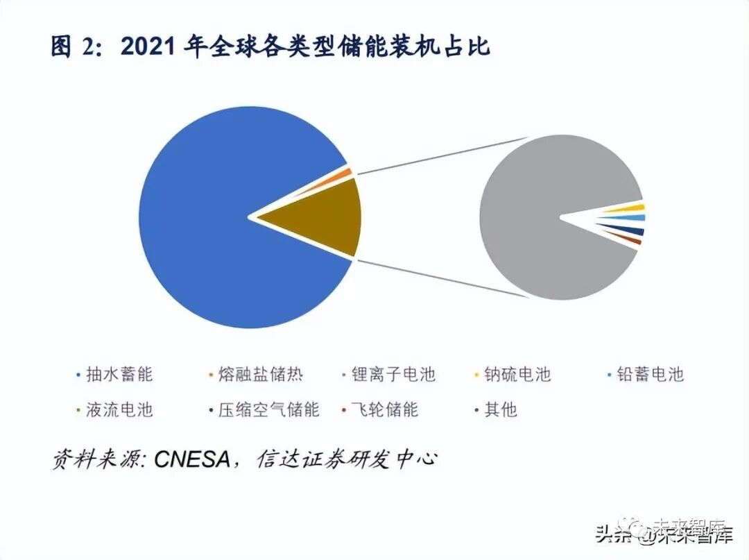 抽水蓄能目前為儲能主體,新型儲能快速發展。從儲能結構上來看,全球儲能和我國儲能 結構都是以抽水蓄能為主,占比分別為 86.2%/86.3%。然而抽水蓄能受到地理位置限制, 抽水蓄能將勢能轉為機械能再轉為電能,響應時間長,因此響應時間快而且局限性小的新 型儲能逐步發展。