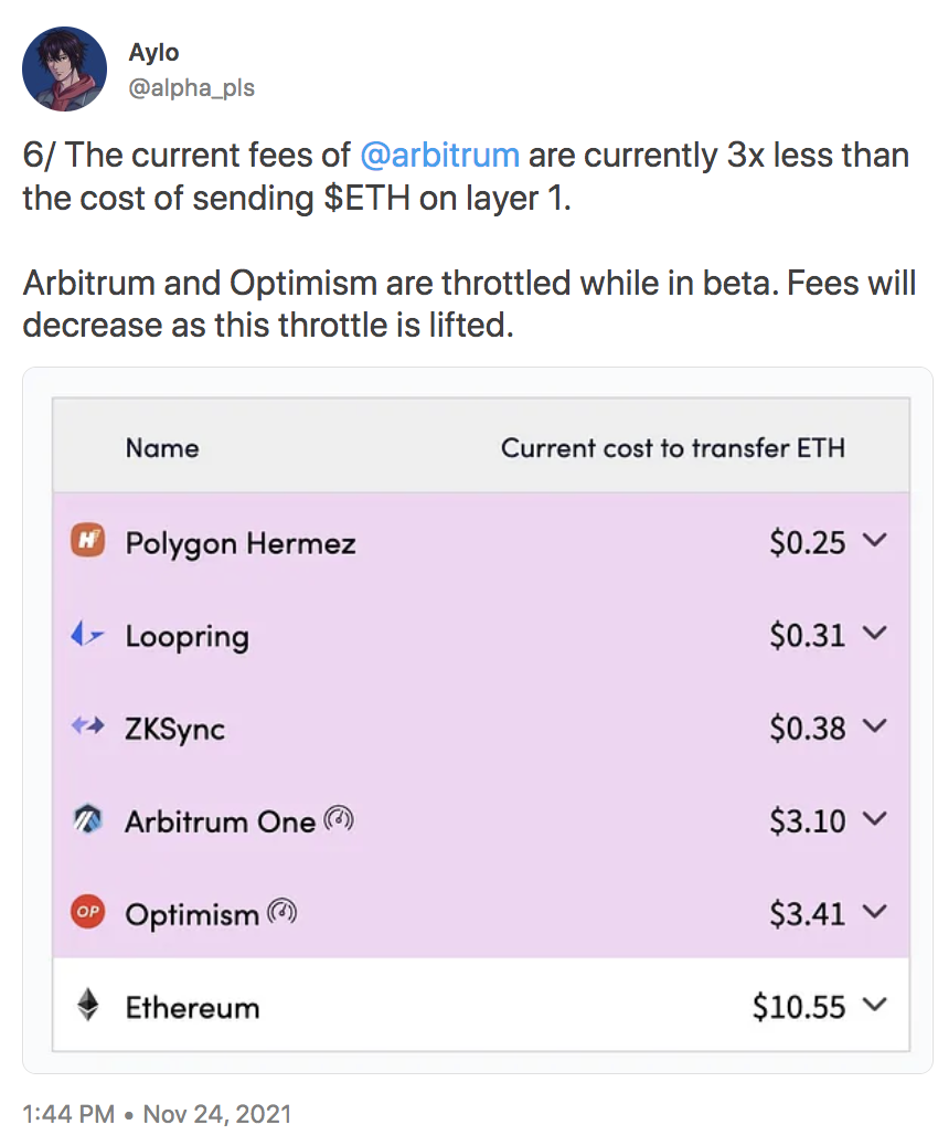 一年前,主要的 Optimistic Rollup 網絡的費用還比較高。
