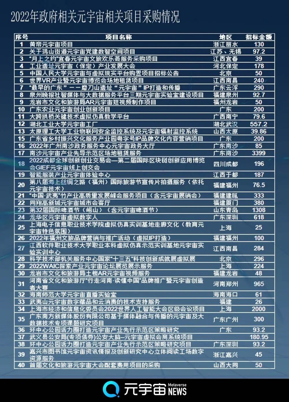 據元宇宙NEWS記者不完全統計,今年以來各地政府對元宇宙相關產品和服務的招標采購共有40余起,涉及的資金超過1.3億元。