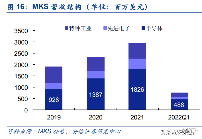 美國萬機儀器(MKS)是全球半導體射頻電源的龍頭企業,根據 TechInsights 數據,MKS 在 2021 年成為射頻電源的市場領導者,在 2020 年近 10%的份額增長基礎上,又獲得了近 1%的份額。MKS 還在射頻功率匹配網絡和線性運動子系統,以及殘余氣體分析儀中超過 3% 的份額增長。此外,MKS 進一步擴大了其在遠程等離子源和壓力傳感領域的市場領導地位, 在每個類別中獲得了超過 2%的份額。