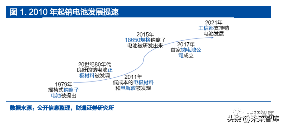 鈉電池隨著產業化加速,量產在即。1979 年法國的 Armand 提出了“搖椅式電 池”的概念,開始鈉離子電池的研究。隨后 Delmas 和 Goodenough 發現了層 狀氧化物材料可作為鈉電池正極材料,Stevens 和 Dahn 發現硬碳材料作為負 極有良好的鈉離子嵌脫性能。2010 年以來,鈉電池的研發進程加速。2011 年中 科院物理所研究員團隊開始了鈉離子電池核心技術的研發,自此以后開發出低成 本的電極材料。2017 年國內第一家專注于鈉離子電池研發和生產的公司中科海 鈉成立。2021 年寧德時代成功舉行了第一代鈉離子電池線上發布會。2022 年, 中科海納和傳藝科技均預計 2023 年量產其鈉離子電池。