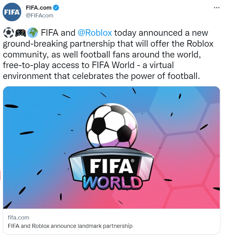 國際足聯在 Roblox 元宇宙中推出虛擬生態系統“FIFA World”