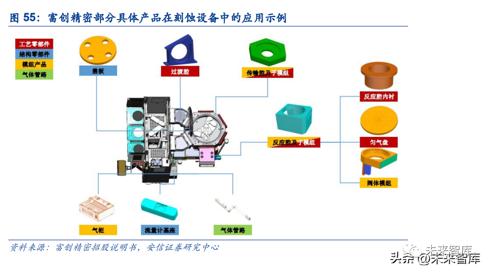 富創精密在 2008 年成立于沈陽,專注于金屬材料零部件精密制造技術,掌握了可滿足嚴苛標準的精密機械制造、高潔凈度表面處理、焊接、組裝、檢測等一站式制造工藝,科創板 IPO 注冊已經成功,上市在即。目前,公司是全球為數不多的能夠量產應用于 7 納米工藝 制程半導體設備的精密零部件制造商,已進入國際大客戶 A、東京電子、HITACHI、HighTech 和 ASMI 等全球半導體設備龍頭廠商供應鏈體系,還是客戶 A 的全球戰略供應商。同 時,公司順應半導體設備國產化趨勢,積極開拓境內市場,產品已進入包括北方華創、屹 唐股份、中微公司、拓荊科技、華海清科、芯源微、中科信裝備、凱世通等主流國產半導 體設備廠商,保障了我國半導體產業供應鏈安全。公司的產品為半導體設備、泛半導體設備及其他領域的精密零部件,具體包括工藝零部件、 結構零部件、模組產品和氣體管路,產品的高精密、高潔凈、高耐腐蝕、耐擊穿電壓等性 能達到國際水平。通過此次股票發行,公司將利用募集資金投資 10 億于集成電路裝備零部 件全工藝智能制造生產基地,另外 6 億用于補充流動資金。屆時,公司將搭建智能信息化 管理平臺,擴大現有產品產能,提高產品科技含量和生產信息化水平,進一步滿足下游市 場需求,同時有助于公司拓寬產品應用領域,提升產品供貨能力。