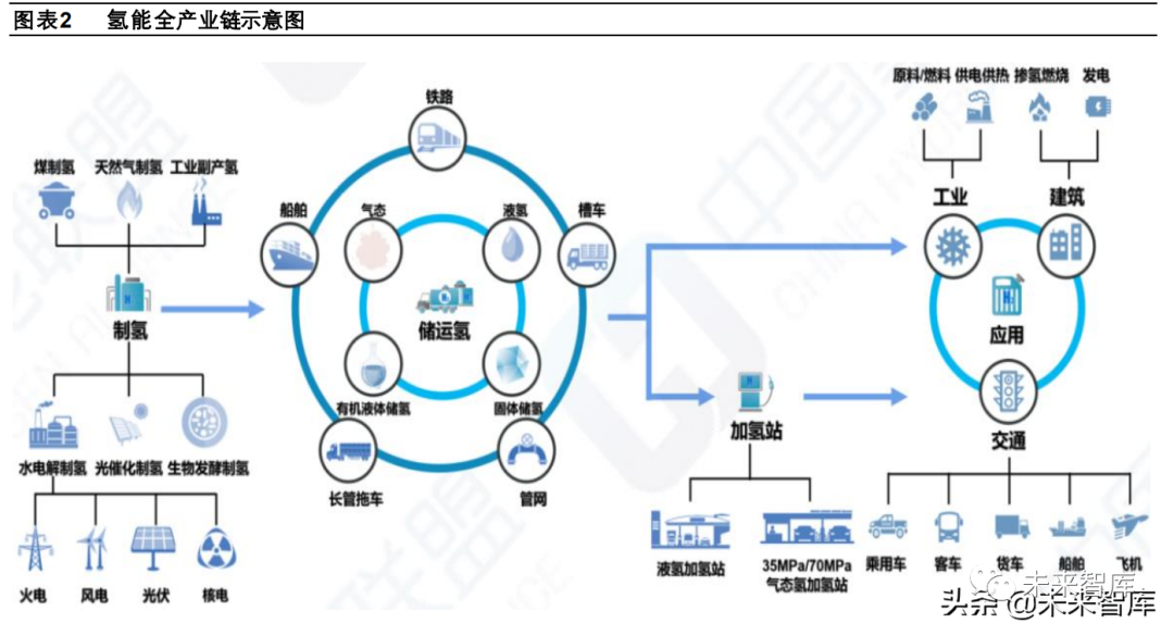氫能產業鏈整體可以分為氫能制取、氫能儲運、氫能應用三大環節,其中儲運環節是高效利用氫能的關鍵,是影響氫能向大 規模方向發展的重要環節。在氫能全產業鏈中,氫的儲運是制約我國氫能和燃料電池產業發展的關鍵環節,因為氫氣特殊的 物理、化學性能,使得它儲運難度大、成本高、安全性低。