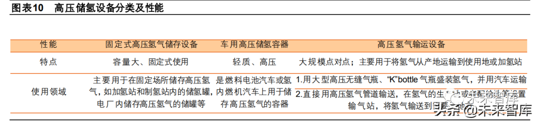 從儲氫成本、技術、安全性等方面來看,高壓氣態儲氫仍是當下儲氫方式的最優選擇,短中期高壓氣態儲氫仍是主流。因 受技術和成本端的制約,國內低溫液化儲氫技術、金屬氫化物固態儲氫短期難以實現規模化應用;因氫能需求量及建設成 本問題,管道輸氫還不能規模化應用,長期來看,待技術突破及產能擴大后,管道輸氫、低溫液化儲氫技術與金屬氫化物 固態儲氫有望成為儲氫的主流方式。