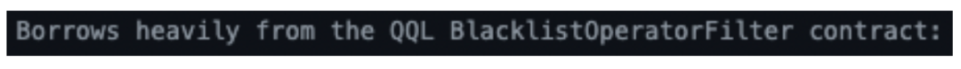 正如我們在下面的截圖中看到的,這段代碼使用了與 QQL 黑名單非常相似的原理。 對于那些不熟悉的人,QQL 黑名單的工作原理是檢查給定的 operator(促進轉賬的合約)是否已被列入黑名單。