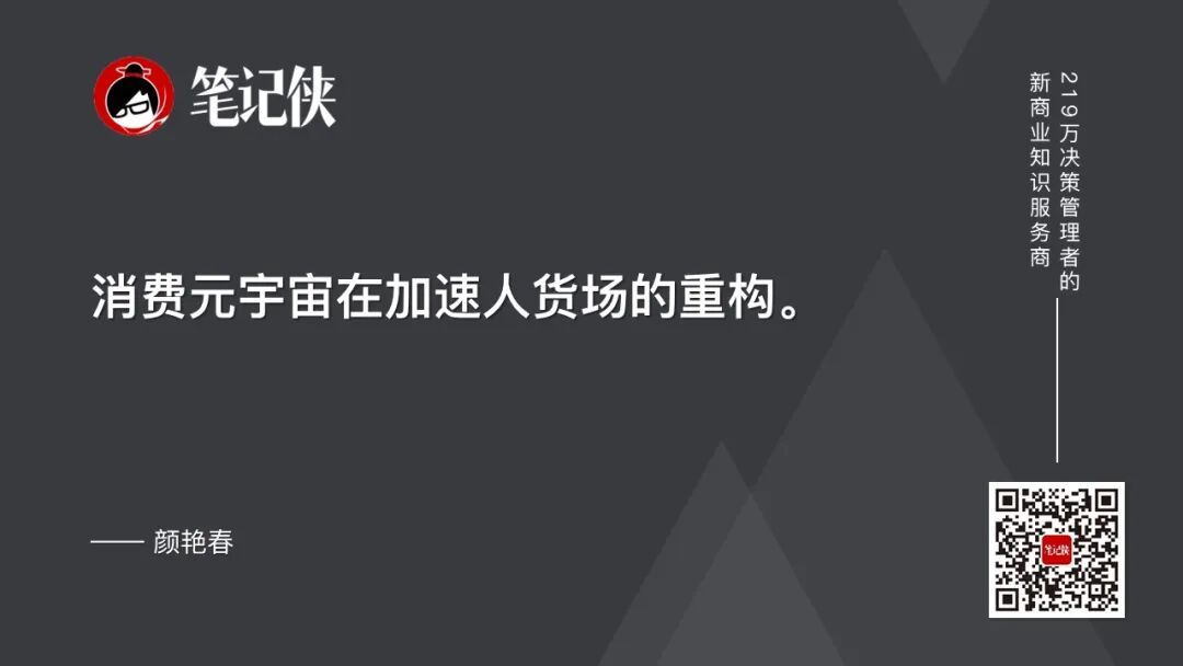 消費元宇宙,正將過去的低頻的人貨場加速重構成了高頻的、實時的人貨場,這為每一個品牌及零售商都帶來無限的商機。