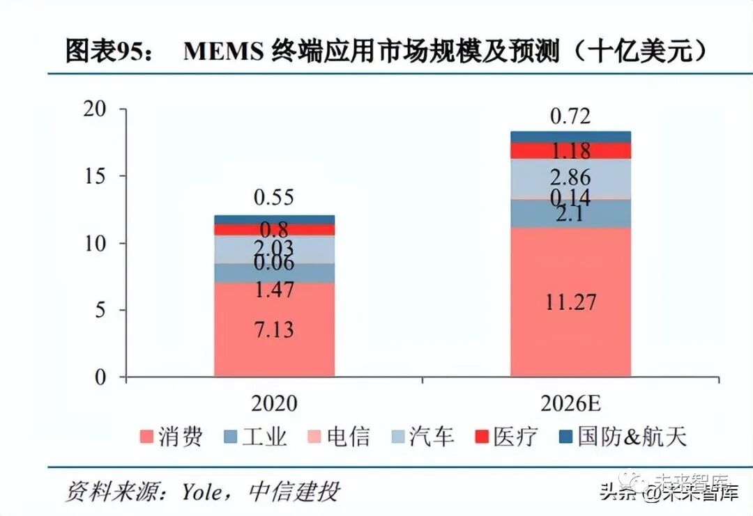 MEMS 技術應用廣泛,光學 MEMS 市場規模快速增長。MEMS(Micro-Electro-Mechanical System)即微 機電系統,集傳感器、微機械結構、信號處理和控制電路于一體,其內部結構一般在微米甚至納米量級,常見 的產品包括 MEMS 麥克風、MEMS 加速度計等。光學 MEMS 是 MEMS 技術的重要分支,主要應用領域包括光 通信、光顯示(例如 DMD 芯片)、智能終端等。根據 Yole 數據,2020 年全球光學 MEMS 市場規模為 5.3 億美 元,預計 2026 年達到 9.16 億美元,期間年復合增長率為 9.5%,以激光雷達、VR/AR 為代表的新興光學 MEMS 應用將迎來快速增長。