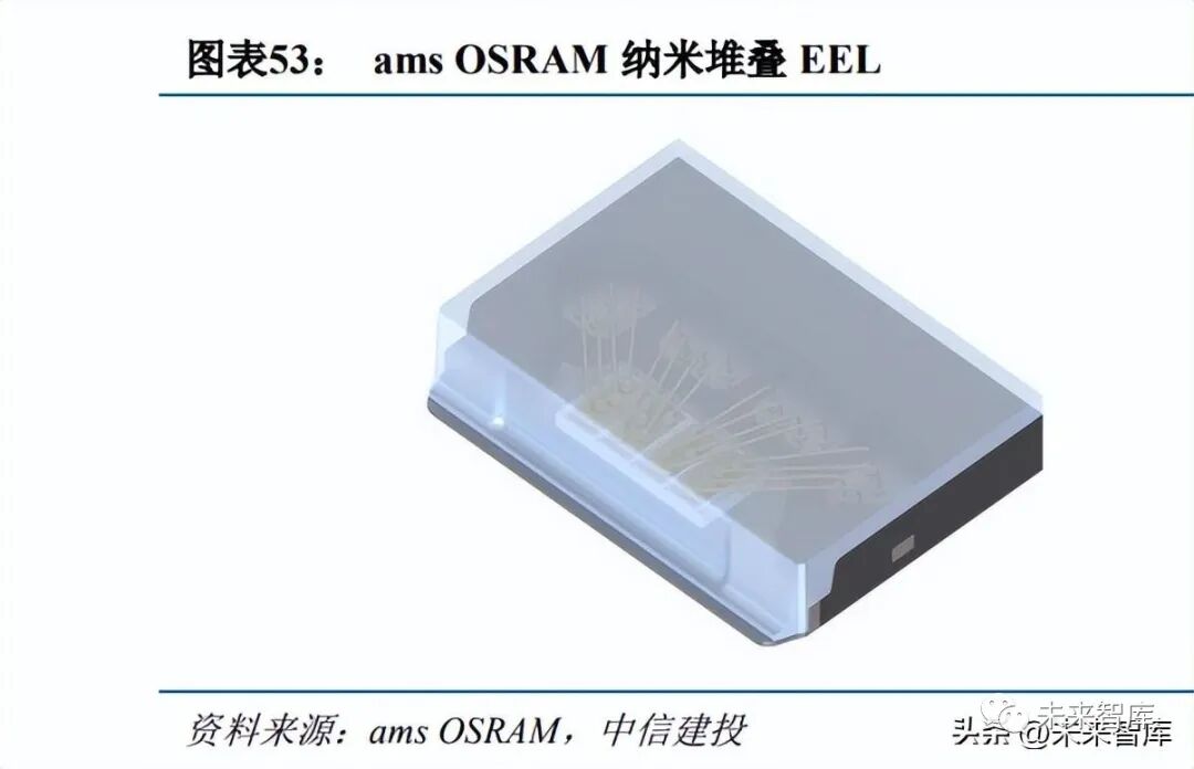 ams OSRAM 是行業領先的供應商。目前激光雷達 EEL 的供應商主要為海外的 ams OSRAM(速騰聚創 M1、Cepton)、日本濱松(Livox Horizon)、Excelitas(LeddarTech Vu8)、國內的長光華芯、瑞波光電子等。ams OSRAM 是市場上少有的同時提供 EEL 和 VCSEL 解決方案的廠商,技術領先,其新開發的芯片設計收窄了 EEL 激光器的溫漂曲線,在汽車應用的典型工作溫度高達 125°C 時可以媲美 VCSEL 的波長穩定性,已有十多 款汽車型號所采用的 LiDAR 輔助系統搭載了它的激光器。