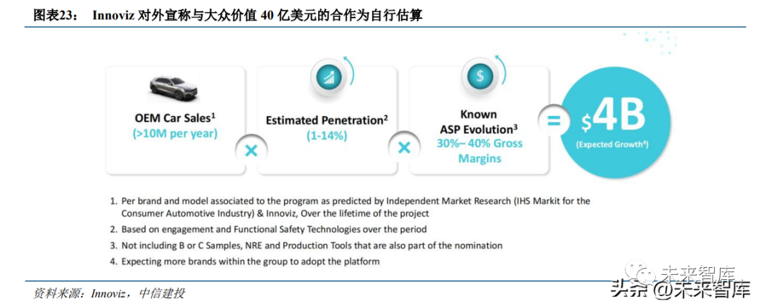 定點到量產存在不確定性,訂單實際成色是關鍵。激光雷達的首發上車都會經歷波折的驗證周期,從定點 到量產隨時可能出現供應商的更換。回顧乘用車激光雷達近幾年的發展,業內已發生多起合作終止或是供應商 被替換的事件,此外還有早已公布的定點項目,遲遲未見量產裝車:1)Quanergy 失去寶馬定點:2018 年寶馬與 QUANEGRY 達成合作,并測試其 OPA 激光雷達,后因技術不 成熟,效果不理想,寶馬轉向與 Innoviz 合作。2)長城摩卡激光雷達由速騰聚創供應,而并非之前宣傳的 Ibeo:2021 年,長城摩卡對外傳遞的信息—— 將搭載 3 顆德國 Ibeo NEXT Flash 激光雷達。但 2022 年 8 月 26 日,速騰聚創卻正式宣布為魏牌旗艦車型摩卡 DHT-PHEV 激光雷達版提供 2 顆 MEMS 激光雷達。實測效果不佳可能是此次長城更換激光雷達選型的原因之一, Ibeo 官方聲稱 Ibeo NEXT 可實現 250 米探測距離和 0.05°的高空間分辨率,但從原理上講,當前 Flash 激光雷 達的探測性能難以達到同期半固態激光雷達的水平。IbeoNEXT 還于近期申請了破產。3)Innoviz 與寶馬合作 4 年還未進入量產釋放階段,與大眾 40 億美元定點金額為自行估算:Innoviz 于 2018 年獲得寶馬定點,麥格納為 Tier1,但經過 4 年合作還沒有進入實際的釋放階段,而且原本傳言在 iX 上的搭載計劃也被推遲,目前確認的是全新一代 7 系。同時需注意,目前通用的行業規則中,激光雷達廠商對外宣稱的與主機廠的合作金額往往不是實際的訂單 金額,而是激光雷達廠商自行做出的假設。例如今年 8 月初,Innoviz 聲明將向大眾汽車集團旗下的 Cariad 子公司提供相關硬件和軟件,用于大眾集團旗下多個品牌的先進駕駛輔助系統和自動駕駛汽車,合作為期 8 年,交 易價值 40 億美元為其自行測算得到。