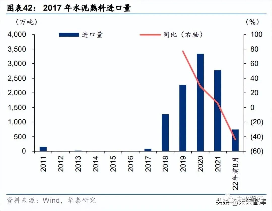 水泥以內需為主,進出口量較小。據 Wind,2021 年我國水泥產量 23.6 億噸,同比-1.2%, 且 2020 年我國水泥熟料產量 15.8 億噸,同比+0.03%。2021 年,我國水泥及熟料出口量 為 220 萬噸,同期進口量為 2772 萬噸。我國水泥基本以自產自銷為主,相比于產量而言, 進出口量占表觀消費量均較小。